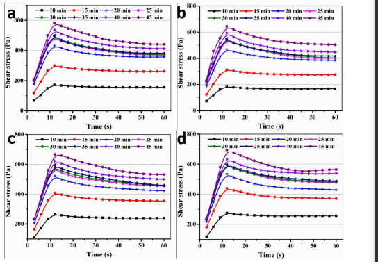 研究砂漿在不同剪切速率下,粘度的變化曲線或者剪切應(yīng)力的變化曲線: